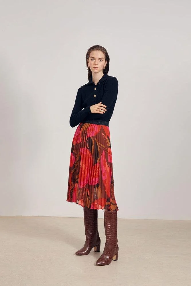 Pleated skirt, €108; mock-croc knew-high boots, €237; both at styled by.ie